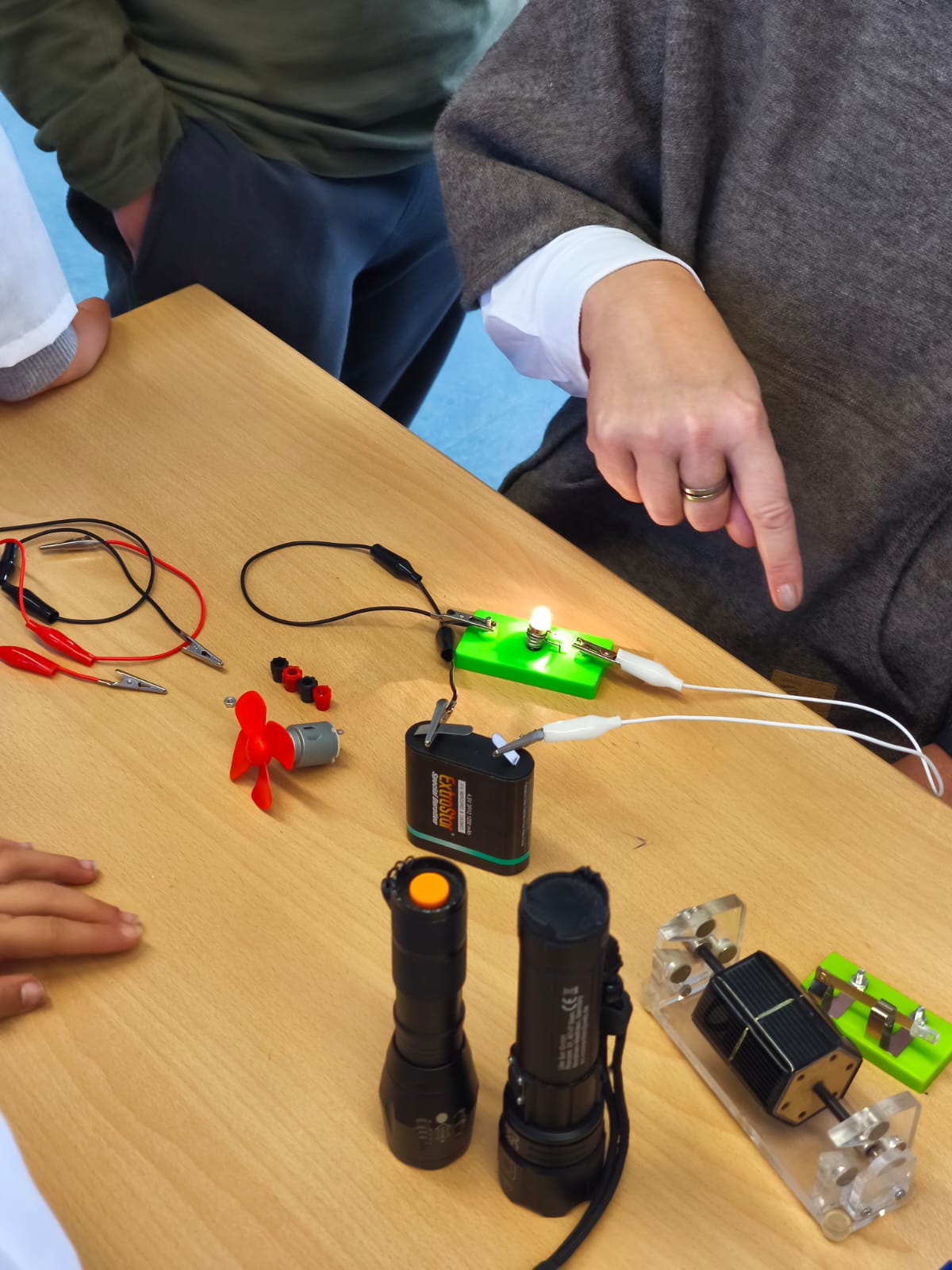 Im dritten Themenfeld drehte sich alles um den Strom. Die jungen Forscherinnen und Forscher lernten, wie Elektrizität funktioniert und wofür sie im Alltag gebraucht wird. Mit viel Eifer wurde ausprobiert, wie man Strom fließen lässt und wie daraus Licht oder Bewegung entstehen kann – immer begleitet von Neugier und Begeisterung.